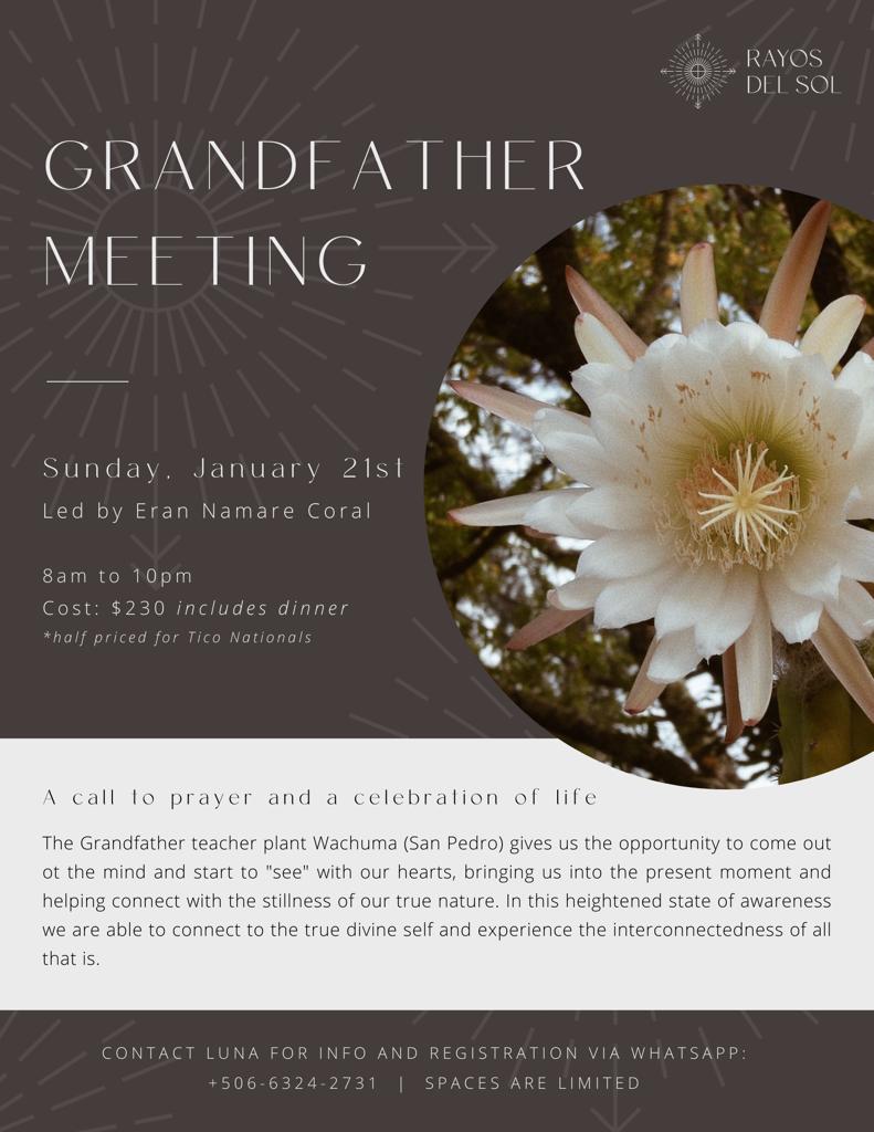 The Grandfather teacher plant gives us the opportunity to come out of the mind and start to “see” with our hearts, bringing us into the present moment and helping us to connect with the stillness of our true nature. In this heightened state of awareness, we are able to connect to the true divine self and experience the interconnectedness of all that is. The meeting is led by Eran Fakir and will be held near Ostional in a beautiful and safe space surrounded by nature. A light dinner will be offered at the closing of the ceremony, and lodging is available to those that require it.